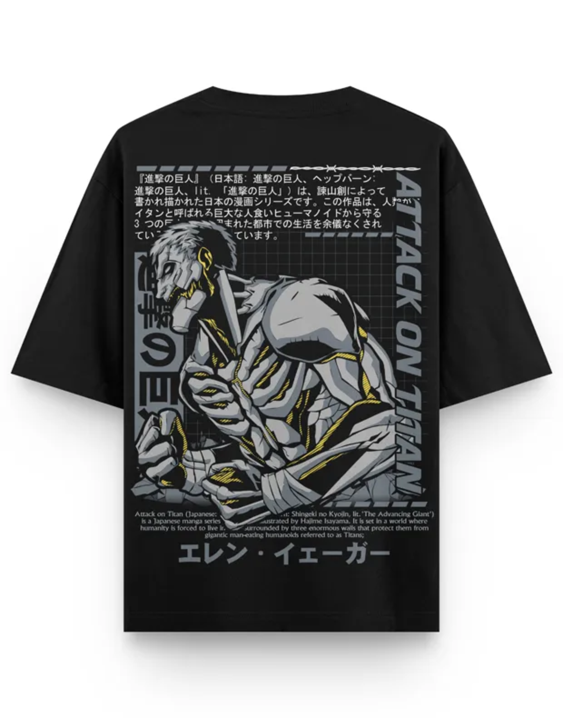 Become the Unstoppable Force with the Armored Titan Anime Oversized T-Shirt! This oversized tee features the imposing Armored Titan, shrouded in steam and destruction.