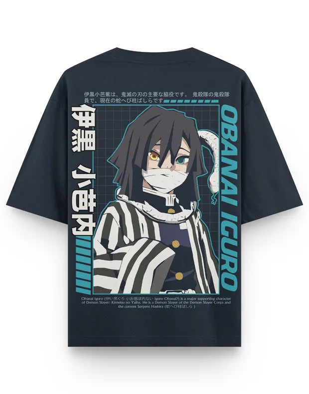 Shed your skin and become the Serpent Hashira with this epic oversized T-Shirt! Represent the Obanai Iguro, in this comfy oversized tee. .