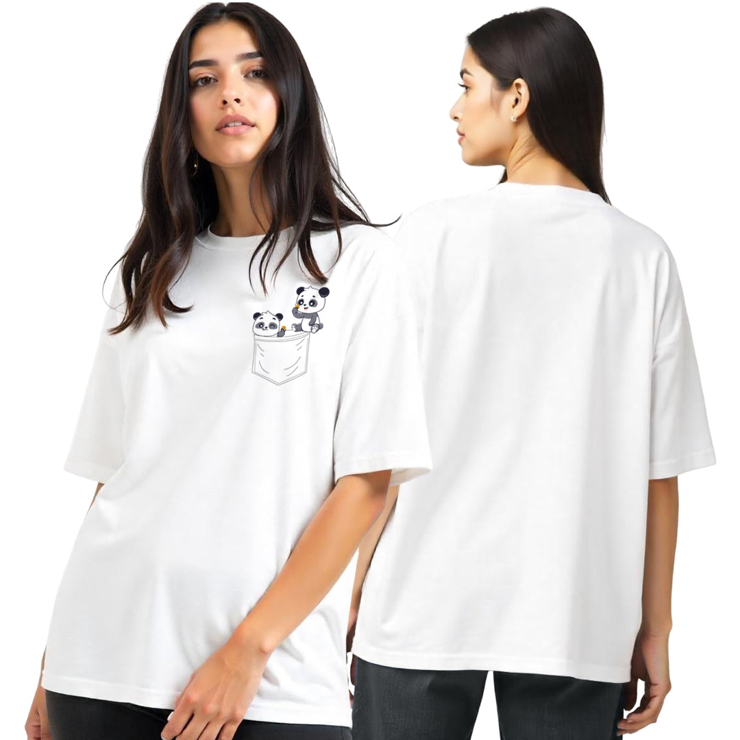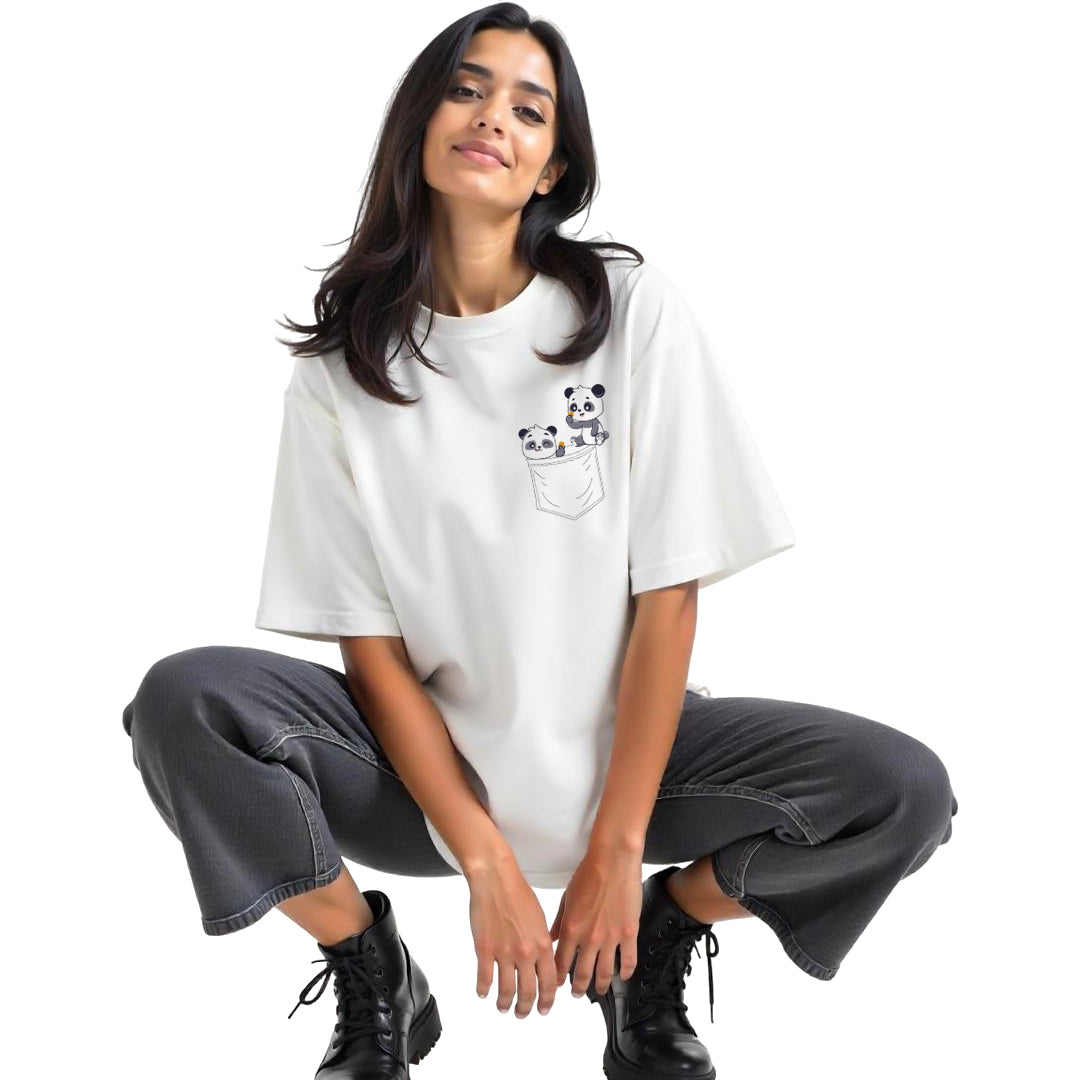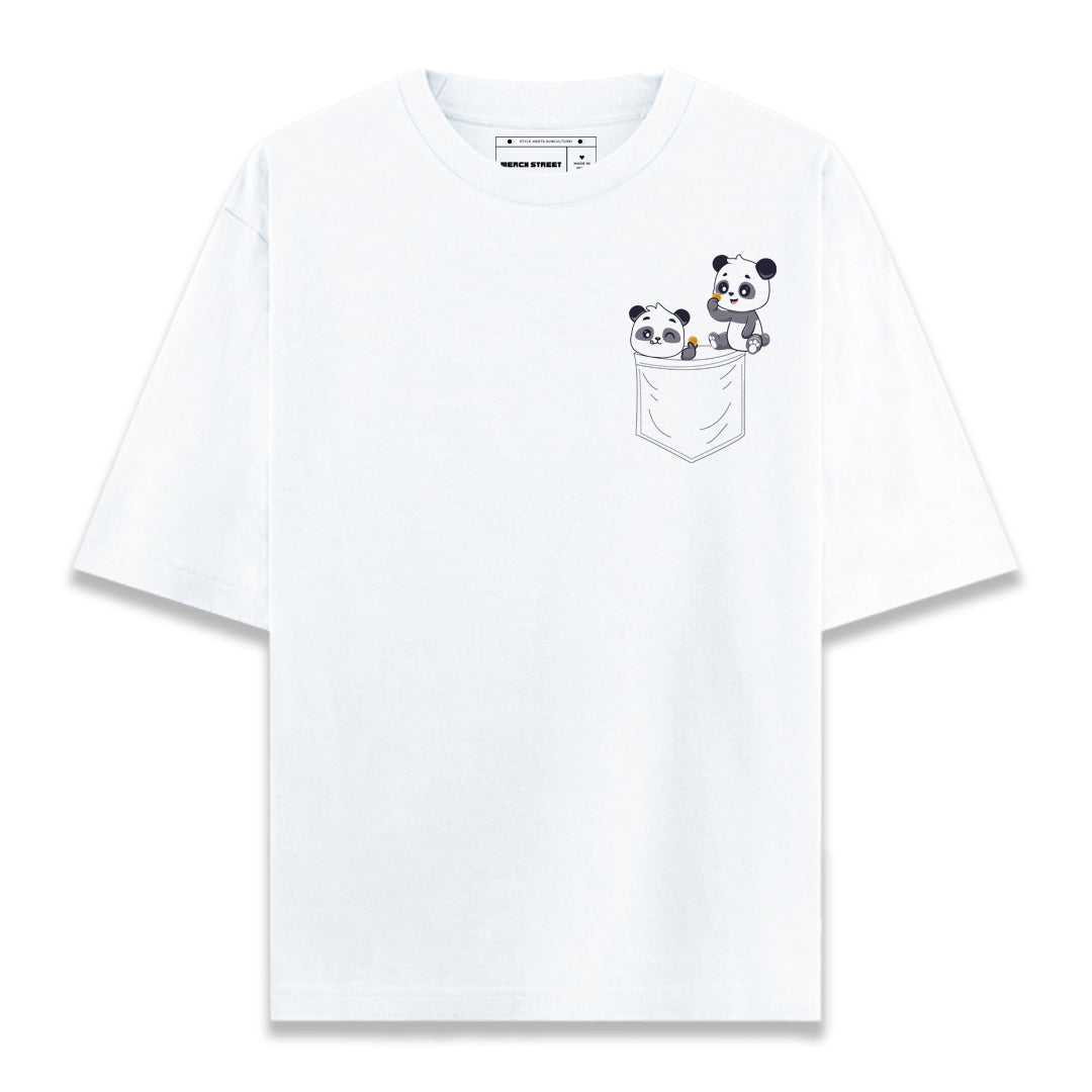 Pocket Panda Buddies Printed Premium Heavy Oversized T-Shirt