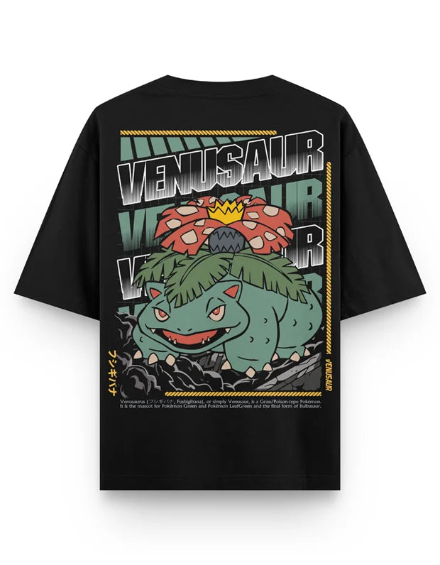 Fully Bloomed and Ready to Catch 'Em All: Venusaur Pokémon Oversized T-Shirt! This isn't your average Pokémon tee; it's a statement piece for true trainers who appreciate power with a touch of floral flair. Embrace your inner Pokémon Master with this bold Venusaur design!